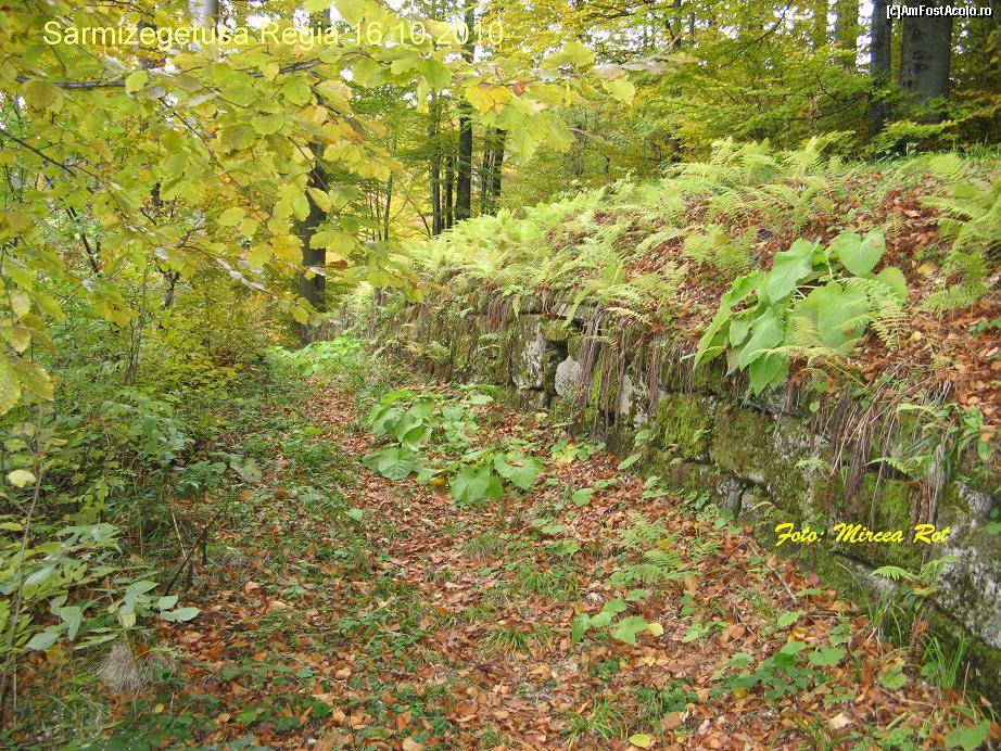 [P29] Cetatea din munte are 3 hectare imprejmuita de zidul gros de piatra....oare cum au reusit romanii sa o cucereasca ? De la zid inafara este prapastie de jur imprejur, este greu sa urc prin padure acum .....dar atunci cu armura....vedeti zidul ce il urmez pana la poarta principala....