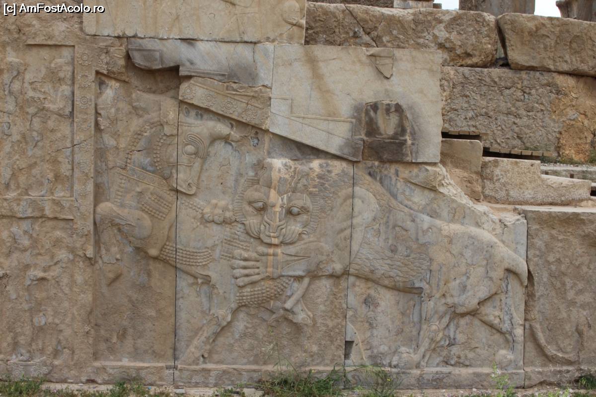 [P28] Persepolis, Palatul Tachara, Lupta dintre soare (leul) și luna (taurul), o imagine zoroastriană des întâlnită în palatele din Persepolis