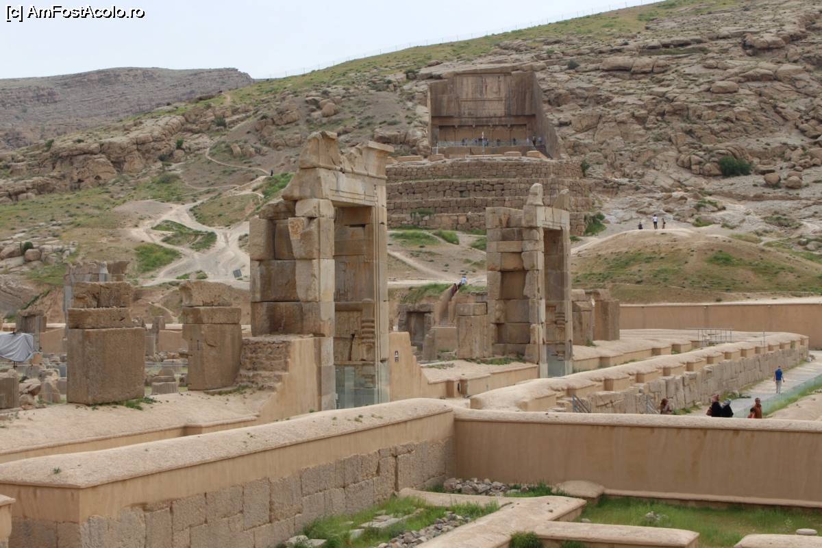 [P35] Persepolis, Intrare la Sala celor 100 de coloane, în plan îndepărtat se vede Mormâtul lui Artaxerxes III