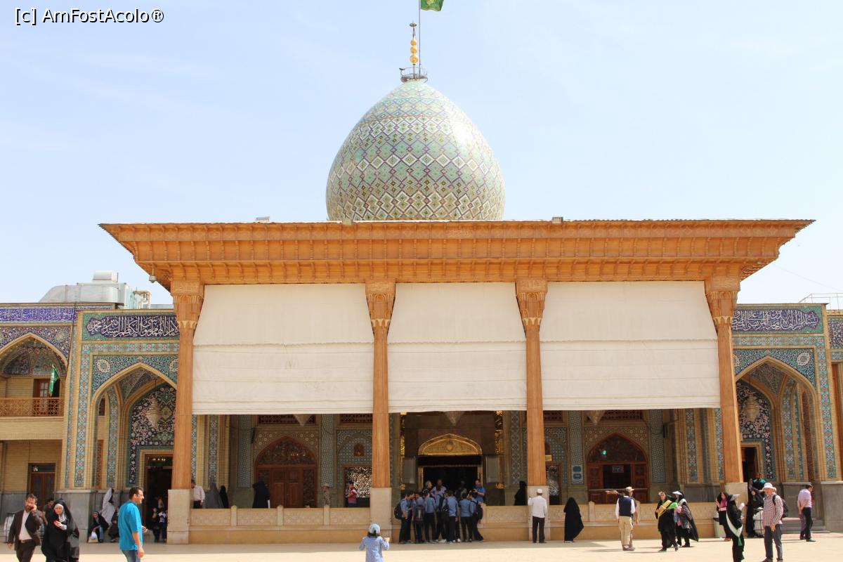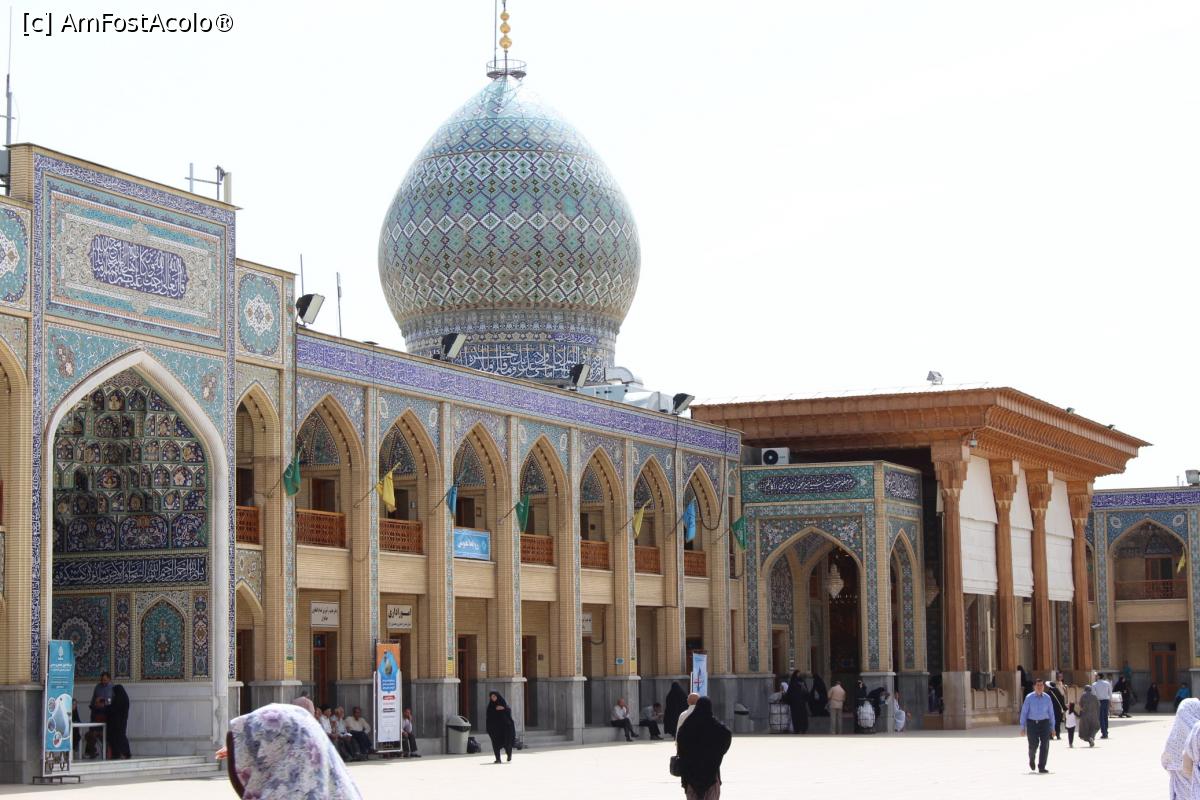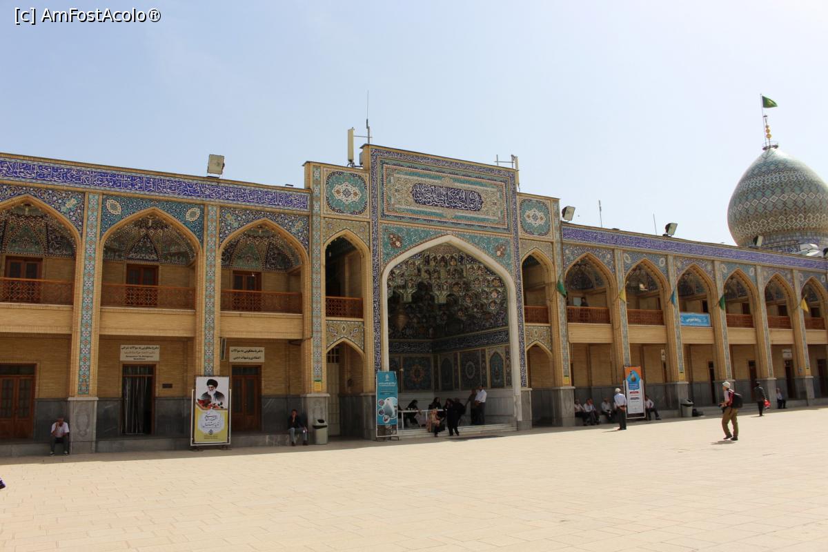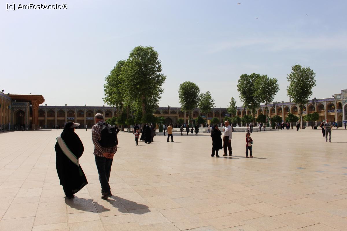 [P59] Shiraz, Altarul Shah-e-Cheragh, Mormântul lui Ahmad vedere generală, se vede puțin și bazinul cu apă și loc de făcut poze...