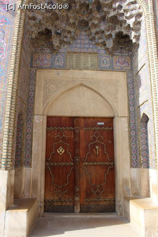 [P01] Shiraz, Moscheea Nasir al-Molk, Intrarea, se văd cele două ciocănele pentru femei și bărbați