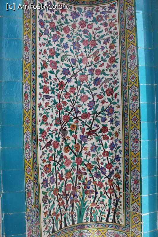 [P05] Shiraz, Mausoleul Saadi, copaci, flori, păsări pictate pe pereții exteriori ai mausoleului