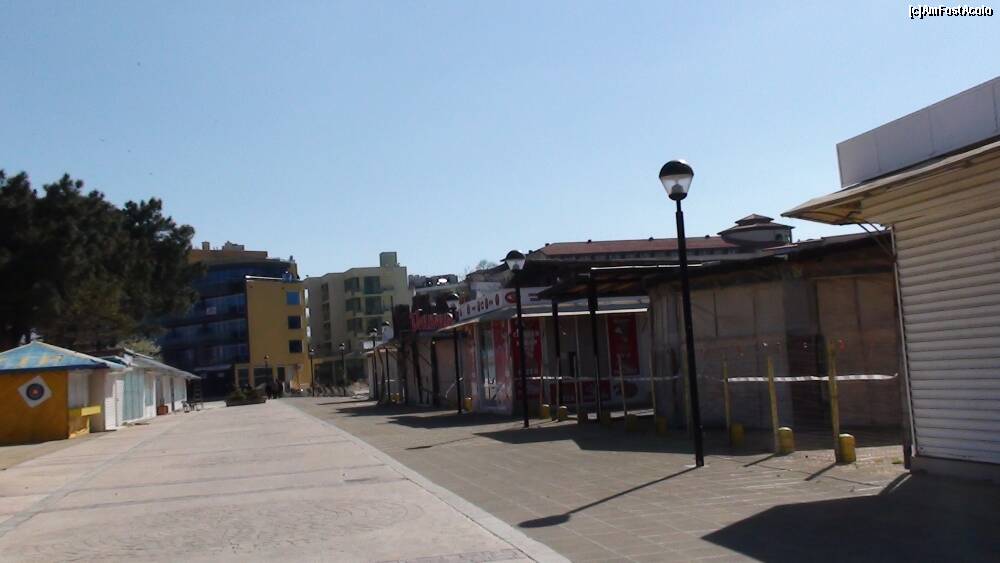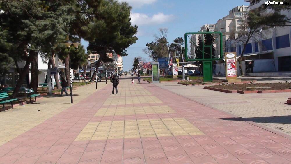 [P02] vedere dinspre mare spre drumul principal al statiunii. De-o parte si de alta sunt numeroase terase,discoteci, magazine.