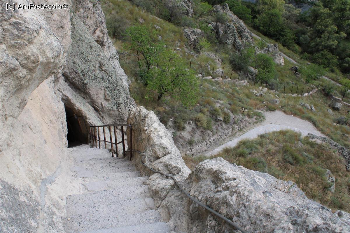 [P61] Vardzia, Coborârea prin tunele, pe scări tăiate în stâncă și mici alei spre poteca ocolitoare de la bază