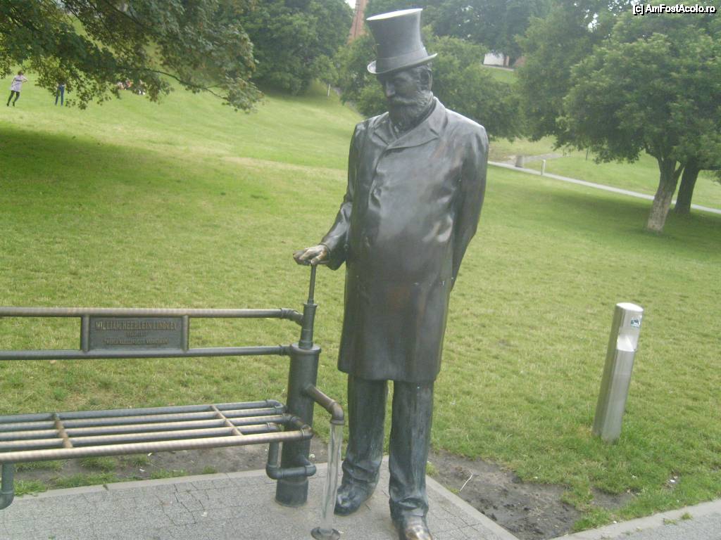 [P11] Un om bine imbracat, intr-un parc, langa Fantana Multimedia.