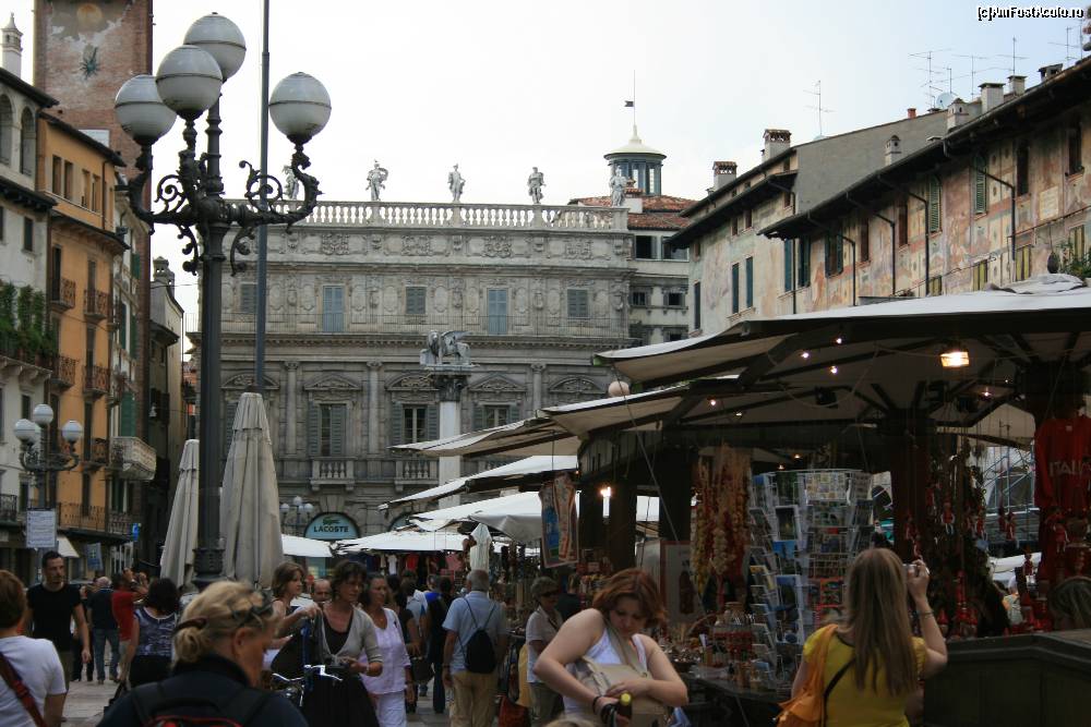 [P09] Piata in Verona in care se vad nelipsitele bazaruri cu suveniruri