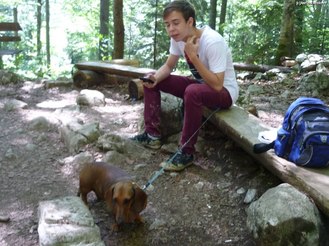 [P32] Peștera Ghețarul de la Vârtop. O așteptăm pe mama sa iasă din peșteră. Observați culoarea maro a încălțărilor și pantalonilor băiatului! Cam asa veți arata și voi la ieșirea de acolo :-)