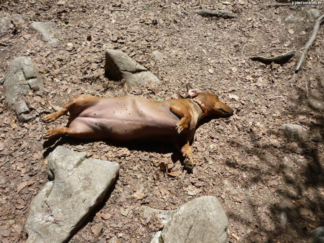 [P33] Peștera Ghețarul de la Vârtop. Natură moartă cu cățel... viu: asa doarme Winnie când este perfect relaxată! :-)