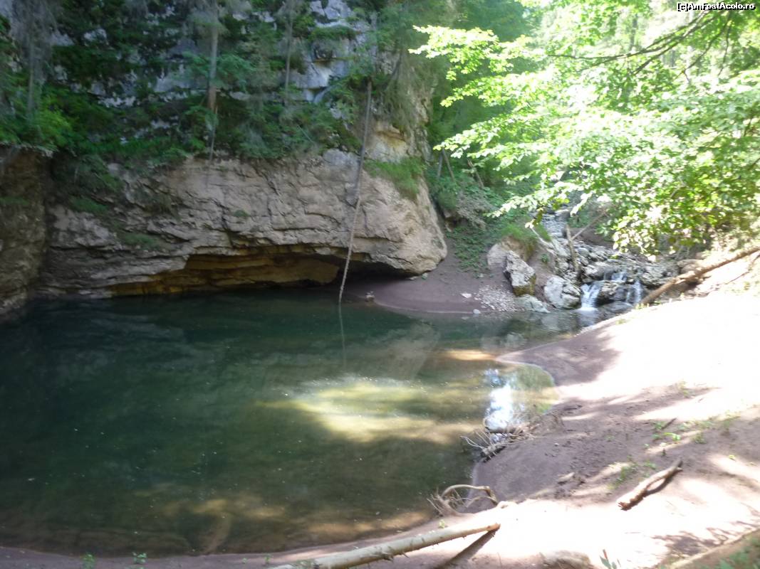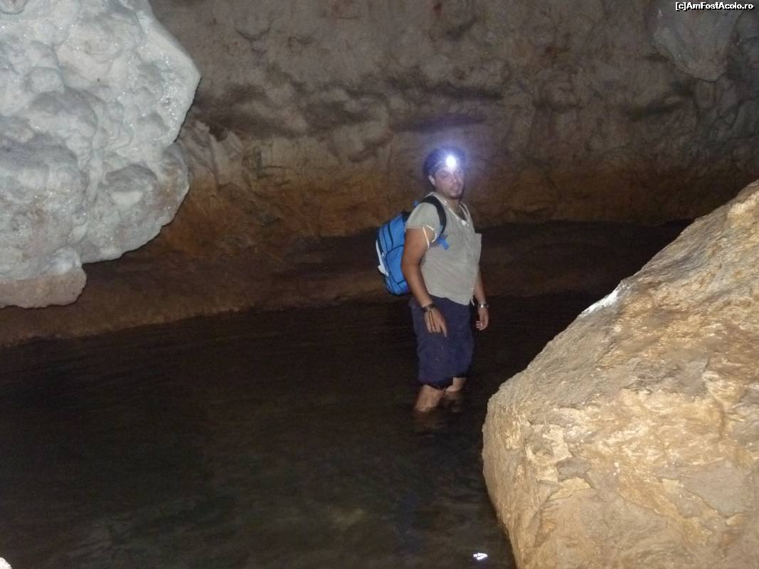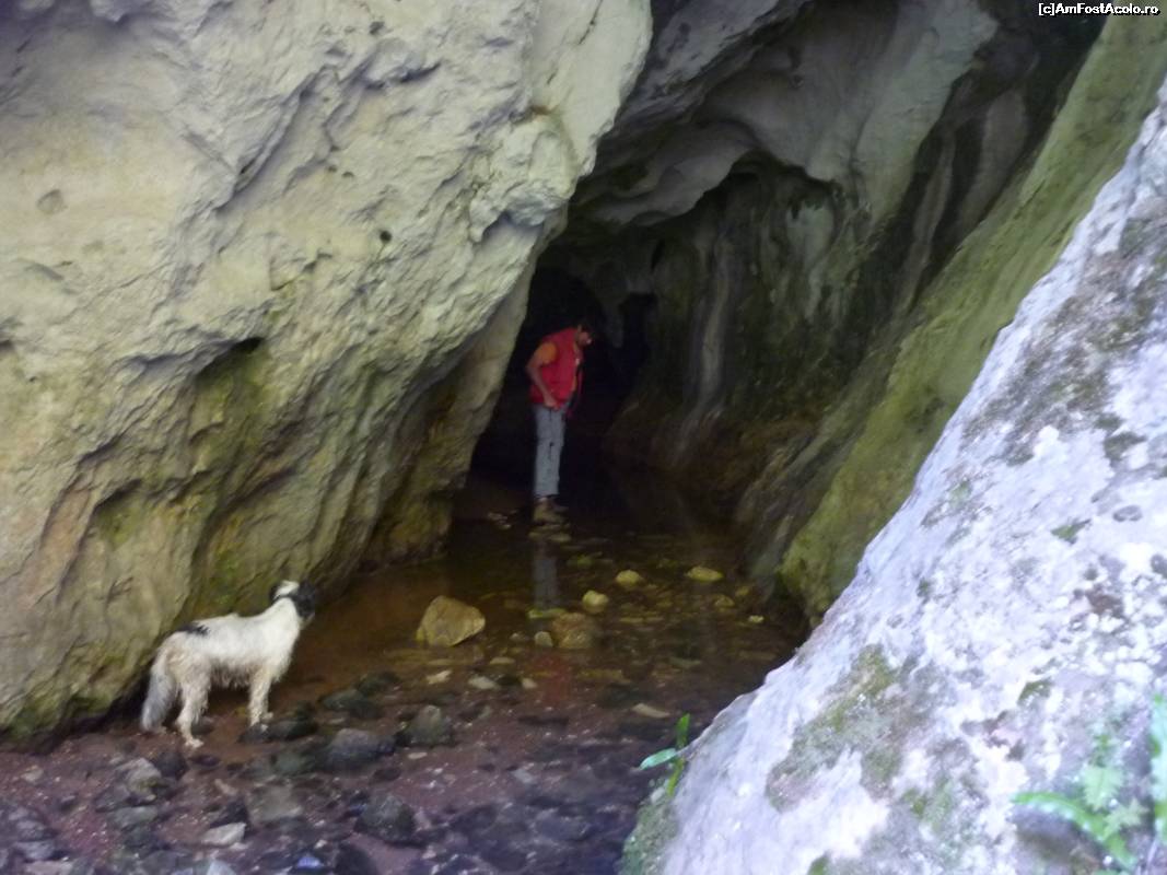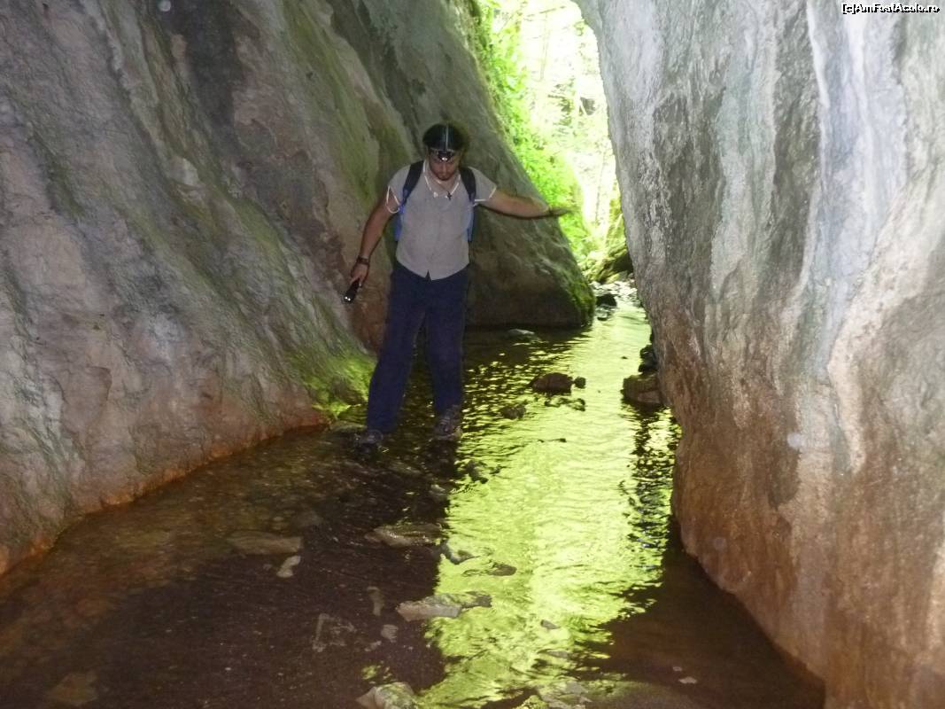 [P14] Valea Sighiştelului. Peştera Pişolca, aici intrasem si eu in apa pâna aproape de brâu, dar cel care mi-a facut poza martor a ratat-o (neclara...):- (