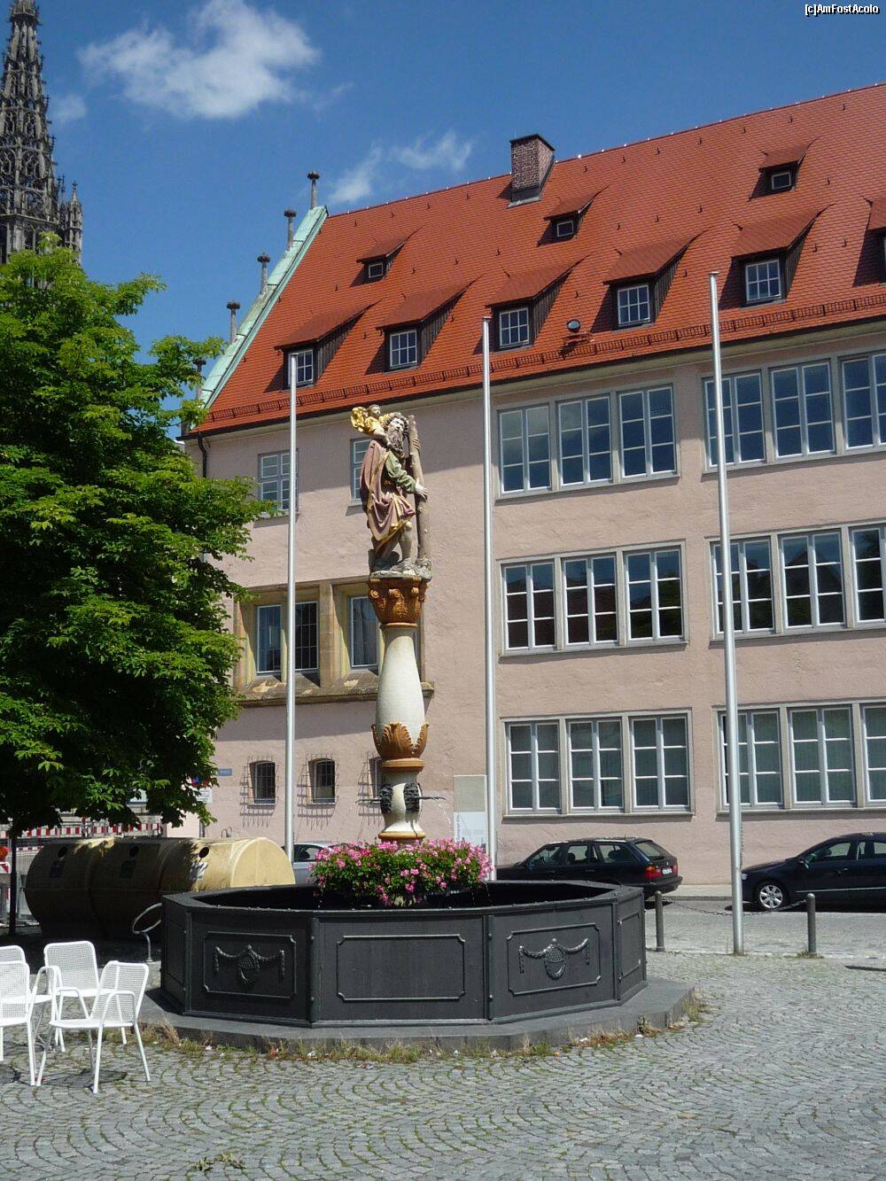 [P21] Ulm - în faţa Haus der Stadtgeschichte, fântâna St. Christopher.