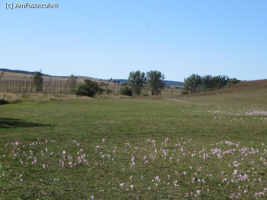 [P23] Brândușe de toamnă, în fundal se zărește biserica fortificată din Viscri.