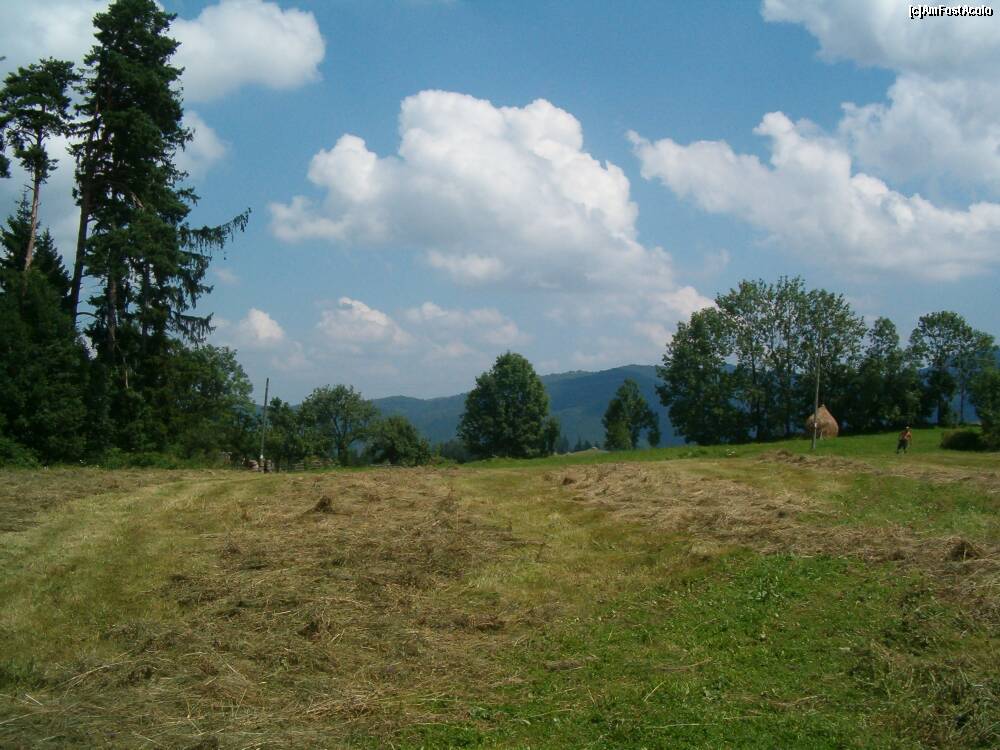 [P08] Pe platou, ciobanii isi vad de treaba si strang fanul cosit si uscat pentru iarna...