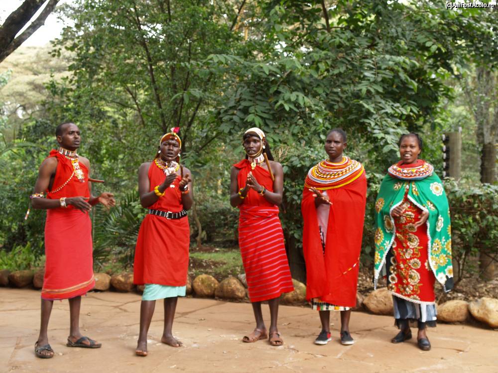 [P10] Un amestec de samburu cu masai intampinau intr-un mod destul de turistic vizitatorii gradinii zoologice -Nairobi.