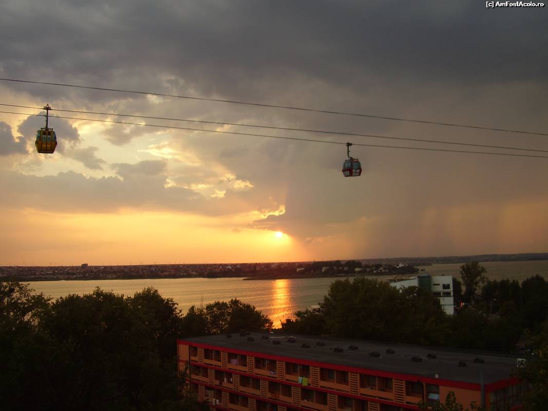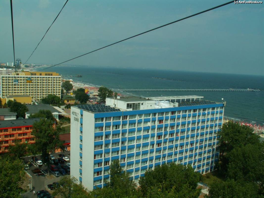 [P01] Hotelul Doina, plaja si marea, vazute din telegondola. In plan secundar, spre Navodari, hotelul Flora.