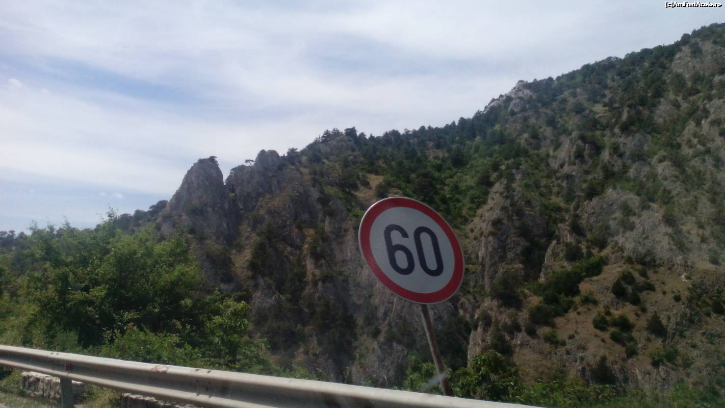 [P31] Peisaj în teren muntos în Macedonia. Și restricția de viteză pe acest segment de drum.