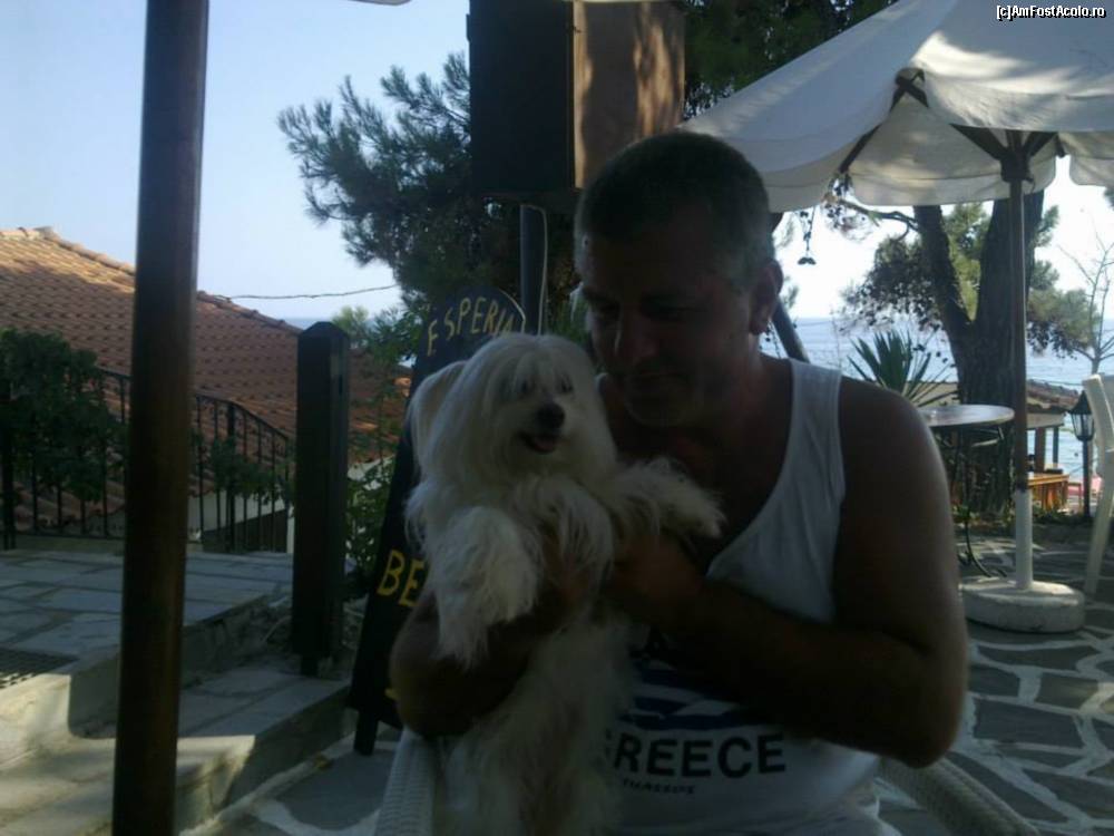 [P04] In curtea Hotelului Esperia, impreuna cu bichonul patronilor.