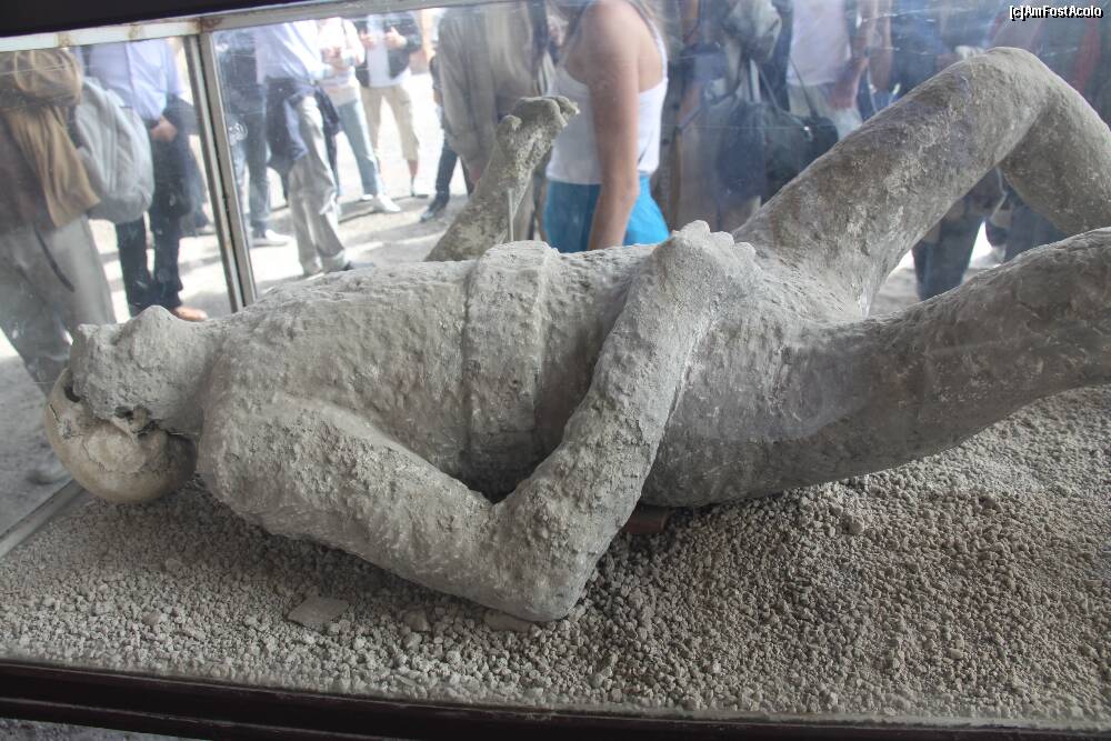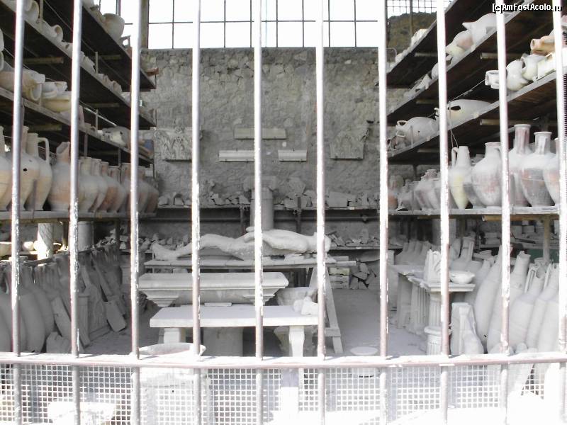 [P24] Granai del Foro. În mijloc, un mulaj obţinut prin injectarea pastei de gips în cavitatea produsă de corpul descompus
