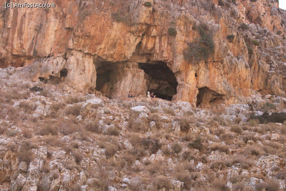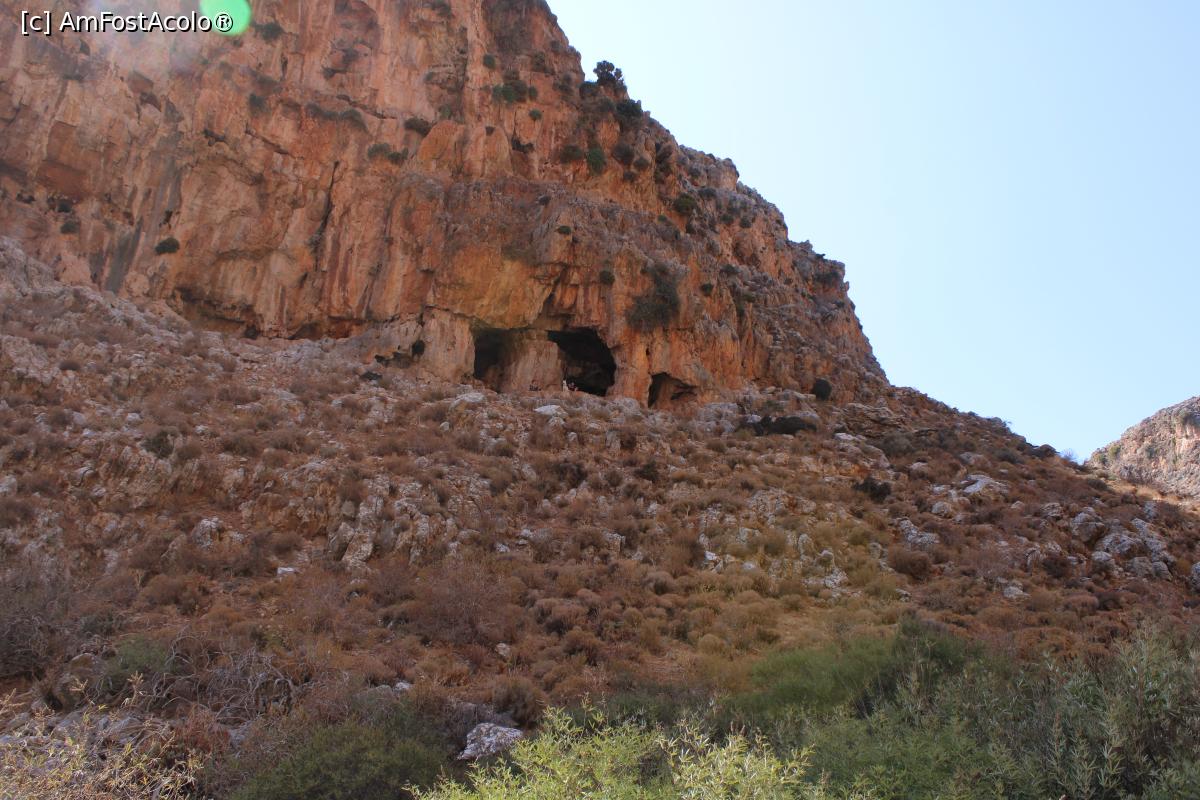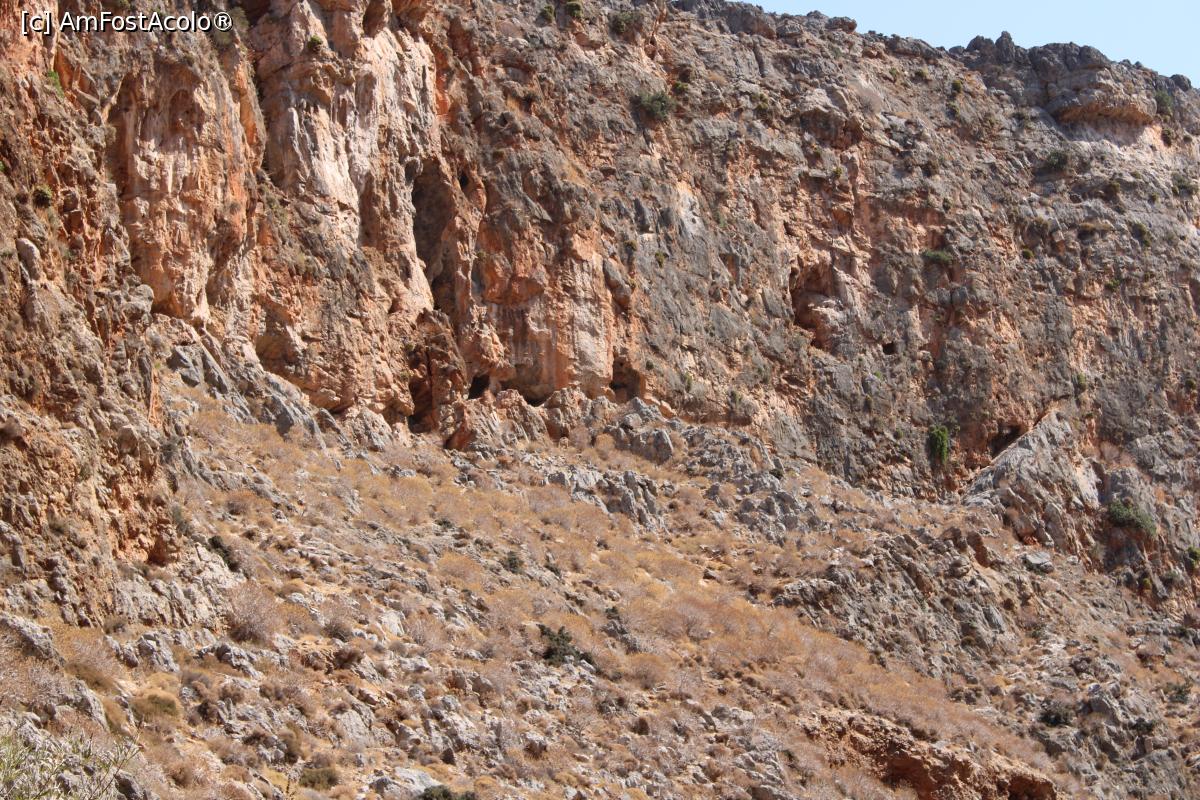 [P40] Creta, Zakros, Defileul Morților, Câteva grote mai mici, așa par de pe potecă, poză mărită...