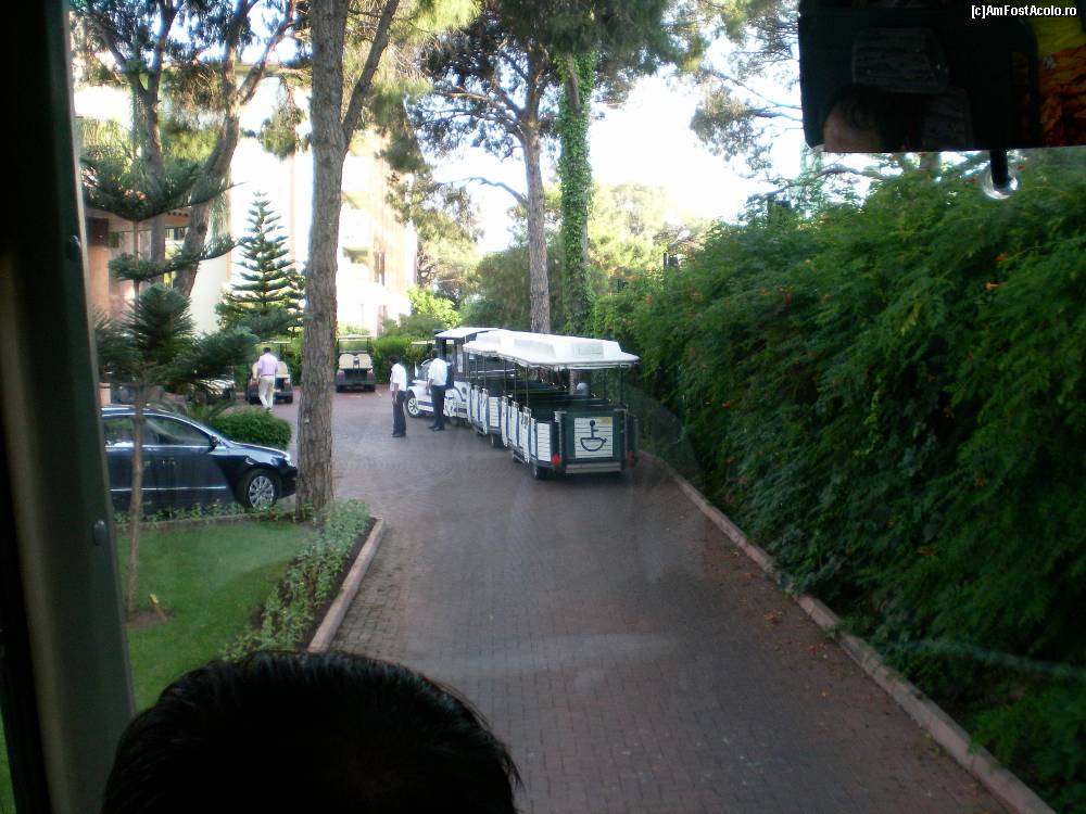 Trenulelul care duce turistii la terenurile de golf, sau la celalalt hotel Gloria Serenity.
