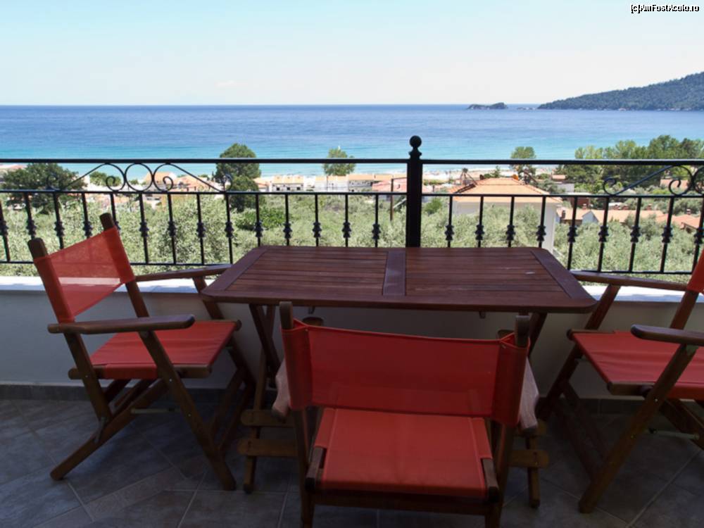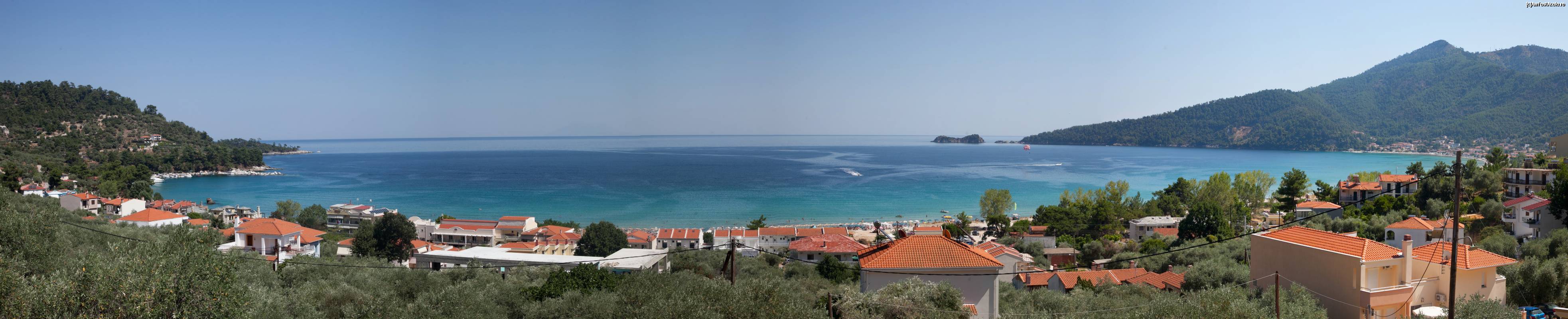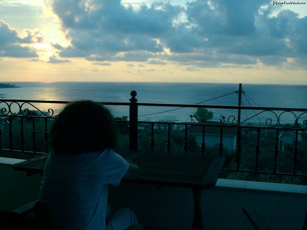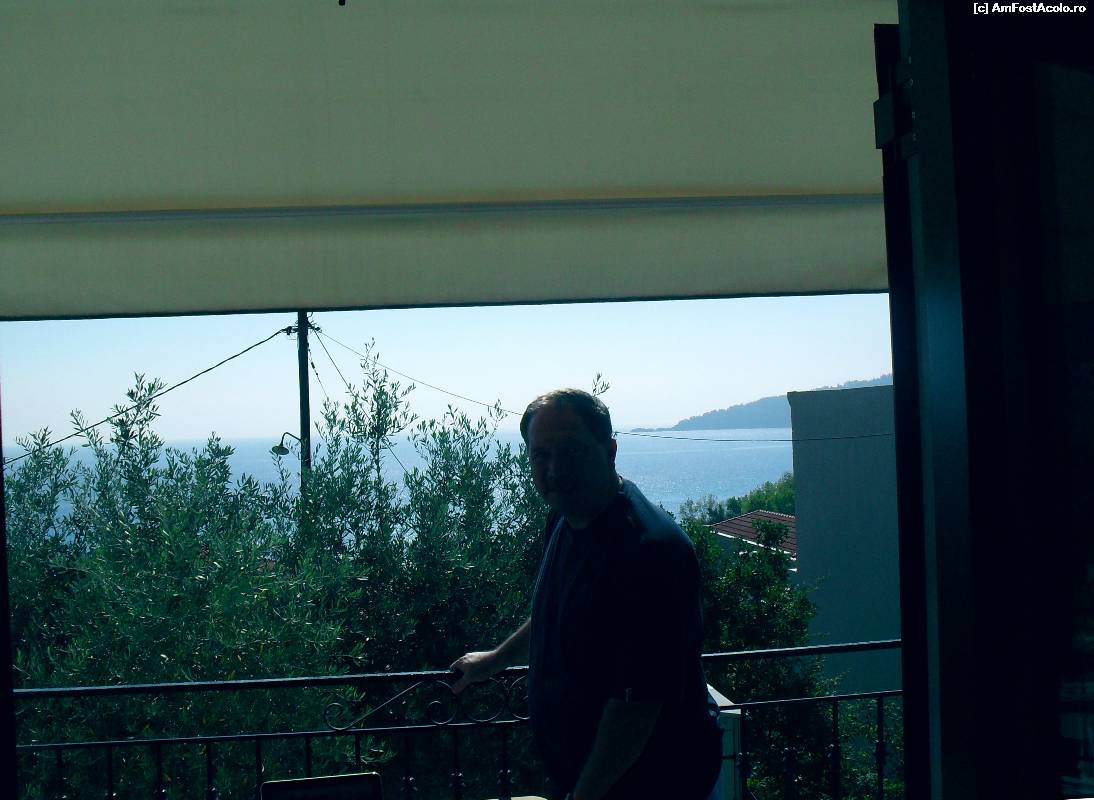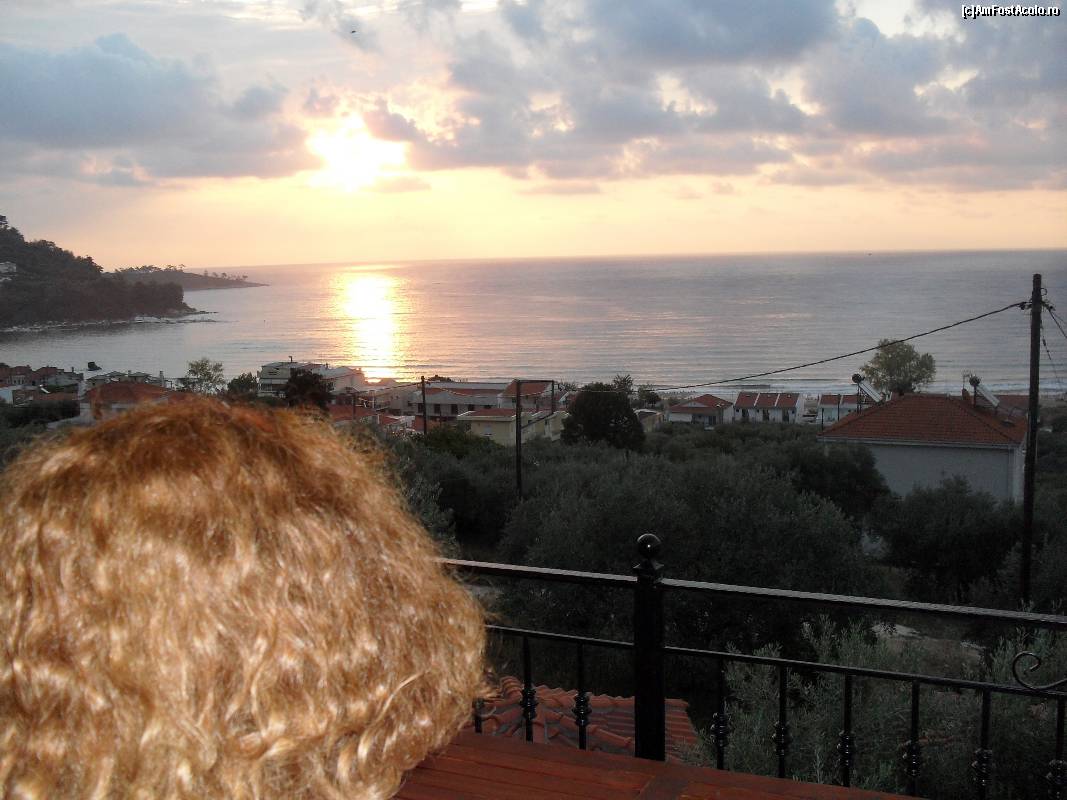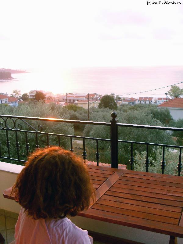 [P08] Marea vazuta la rasarit din balconul de la etajul apartamentului, peste vilele din Skala Panaghia, spre golful de la Golden Beach.