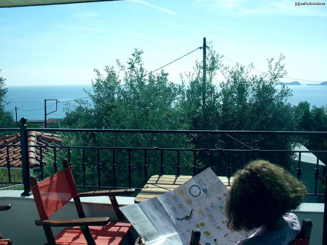 [P06] Terasa de la parterul vilei aflata la adapostul gradinii de maslini, dar cu fata la golful din Chrissi Ammoudia.