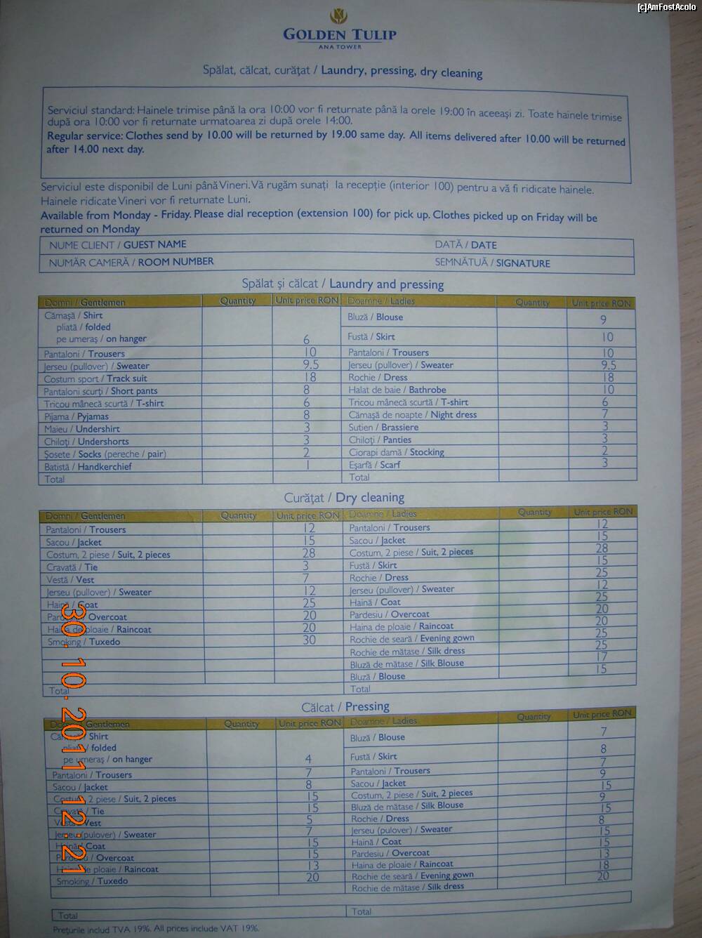 [P14] Laundry pressing and dry cleaning prices...