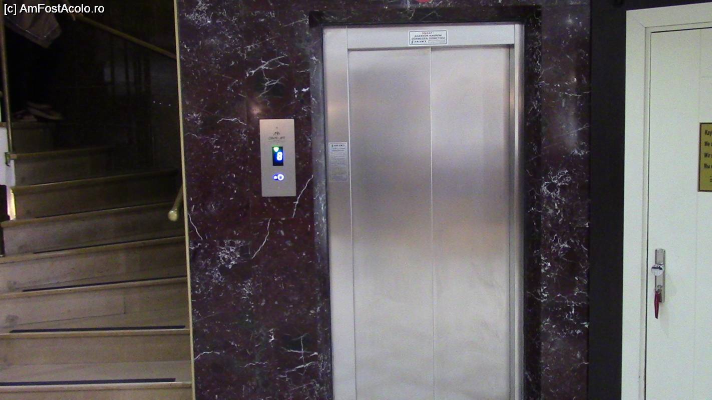 [P14] Liftul din holul hotelului urca doar până la etajul 8. Pentru următorul nivel se folosesc scările.