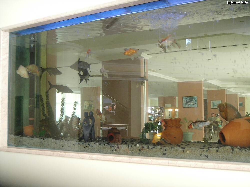 [P85] Acvariul acesta se găseşte la holul clădirii CLUB şi desparte spaţiul afectat turiştilor care merg spre camerele ocupate, de Snack bar... De altfel, prin geamul acvariului sepot vedea turiştii care servesc masa acolo...