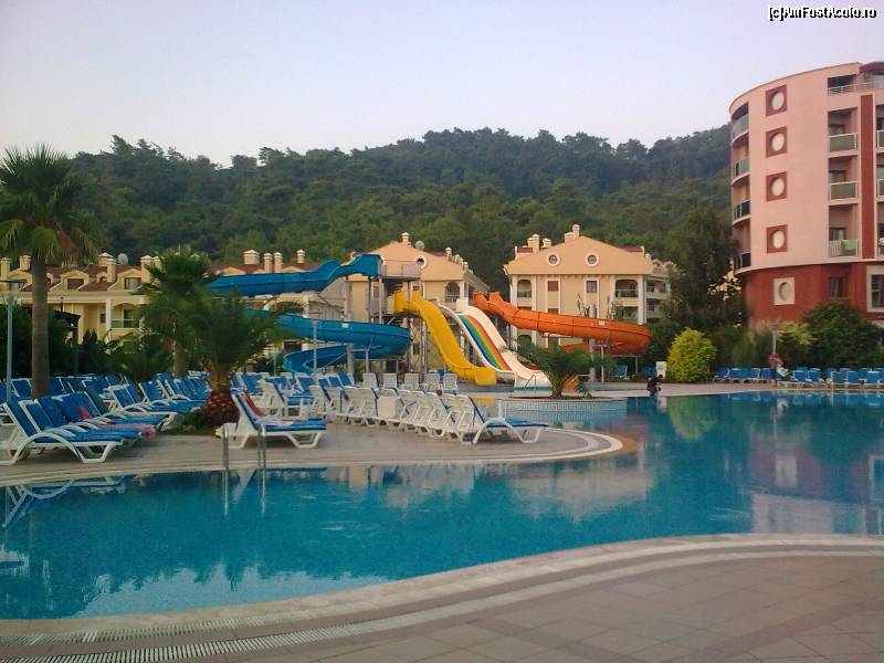 [P12] Piscina de la resort... În faţă este toboganul de apă... Clădirile din spate sunt formate din apartamente private, situate în exteriorul hotelului. Am fost acolo: sunt frumos construite...