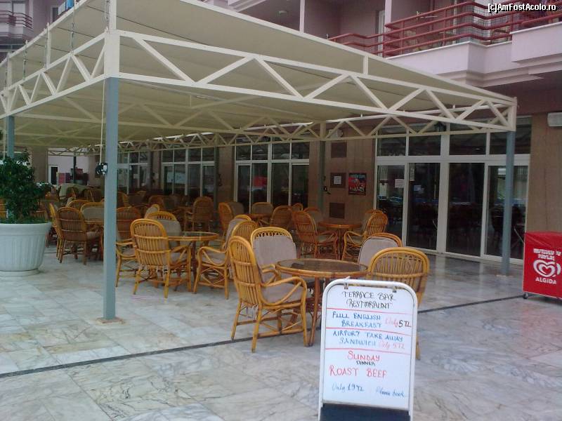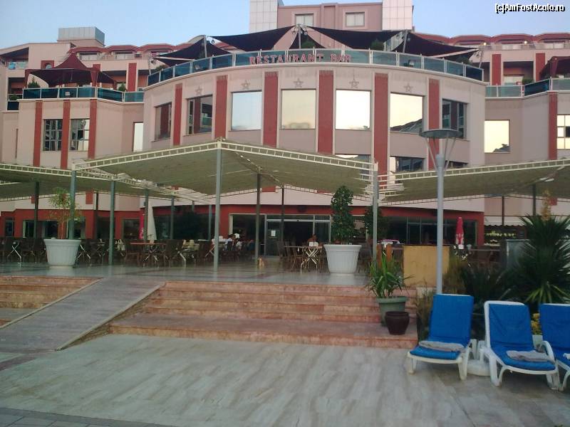 [P08] Piscina de la CLUB... În faţă este terasa unde se servesc clătitele turceşti cu brânză şi verdeţuri. Acolo îmi desfăşuram programul meu de bancuri... Poza este făcută dimineaţa, înainte de răsăritul soarelui... Că noi ne sculam cu noaptea-n cap, uneori nici nu mai dormeam...