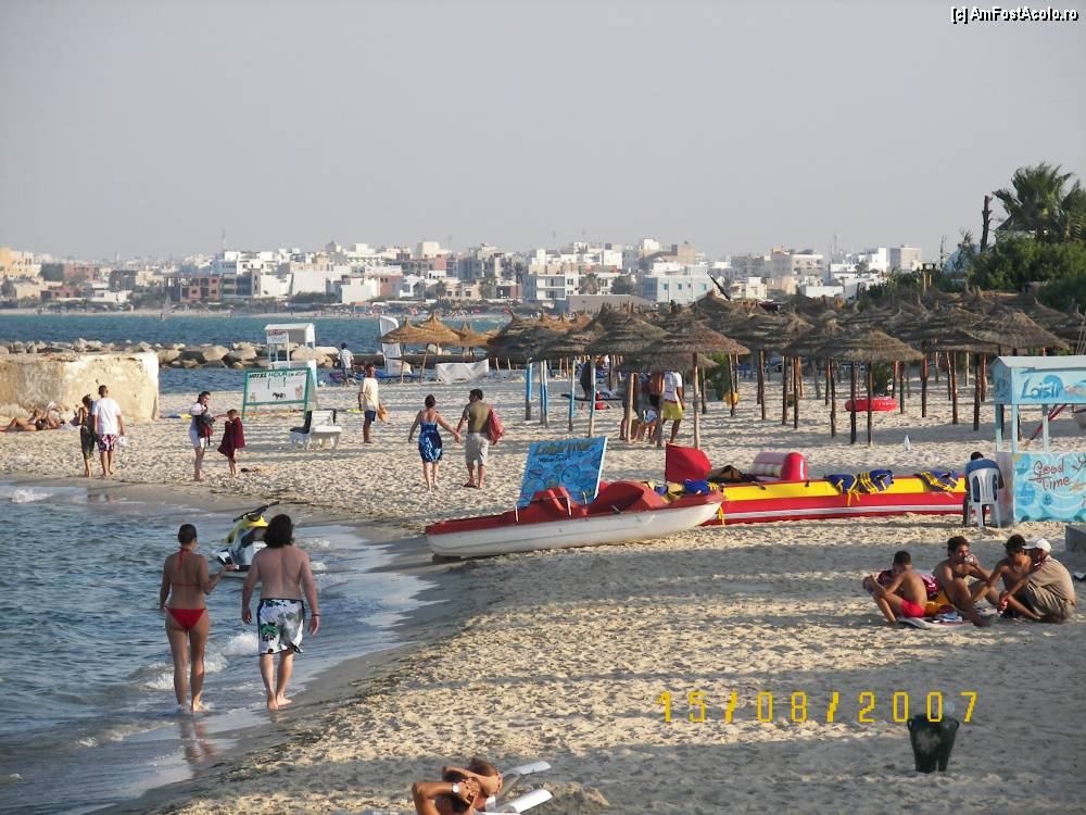 [P07] O mică parte din plaja din Tunisia în apropierea hotelului Houria Palace. În depărtare se vede oraşul Sousse unul dintre cele mai mari oraşe din Tunisia.