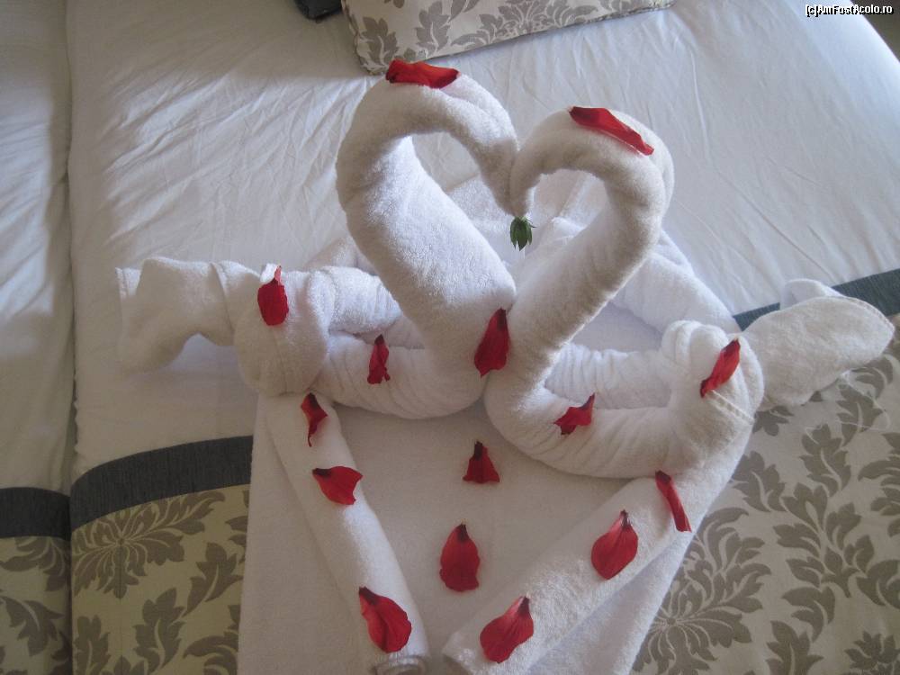 [P15] Un aranjament lasat de camerist, cu 2 mici cadouri pt noi : 2 semne de carte egiptene.