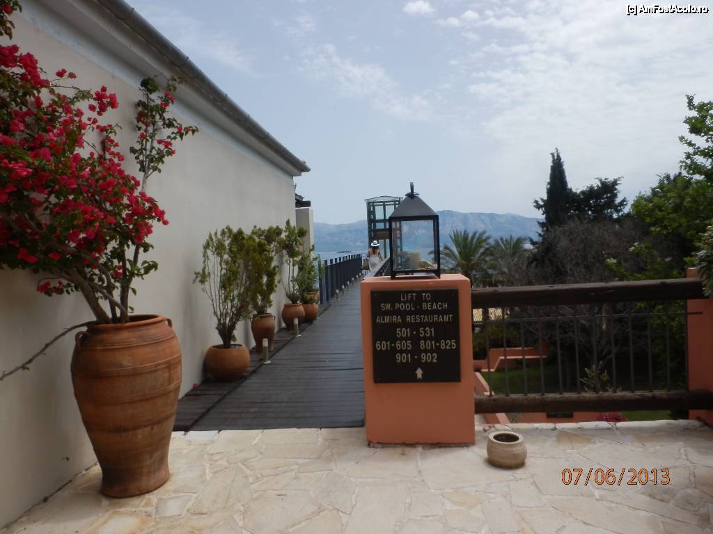 [P11] Hotelul Ionian Blue, drumul spre lift. Cei care doresc pot merge si pe scari, însă sunt foarte abrupte şi este mult de coborât/urcat.