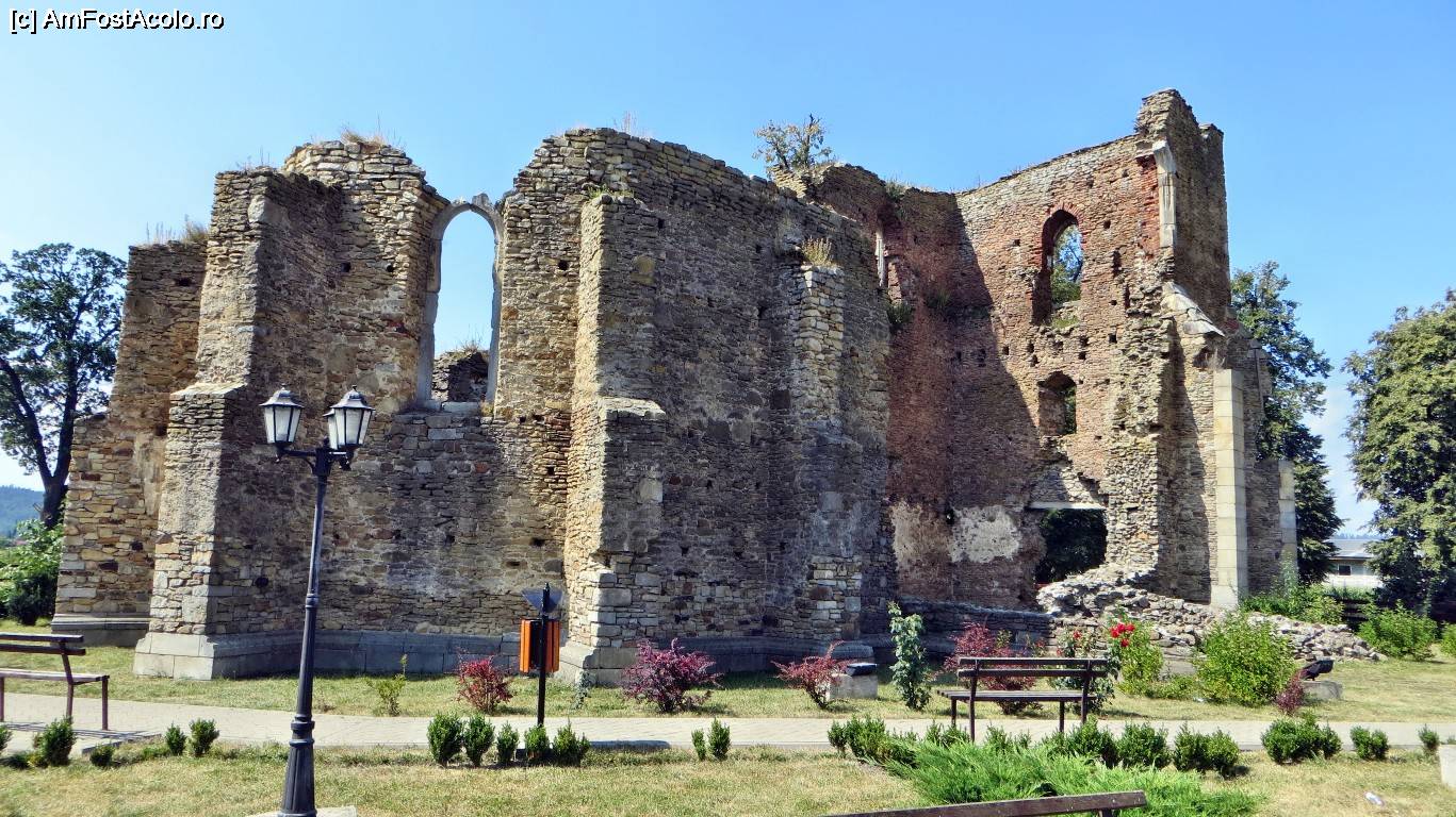 [P02] Ruina Catedralei catolice și parcul din față văzute din drumul principal (2). Catedrala a fost construită de Alexandru cel Bun la începutul sec. XV (probabil în 1410) dorind astfel să-și omagieze soția, prințesa Margareta, catolică de origine poloneză