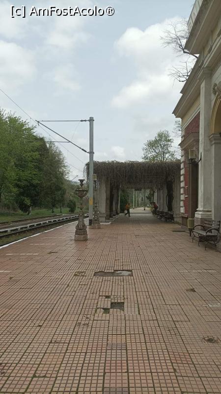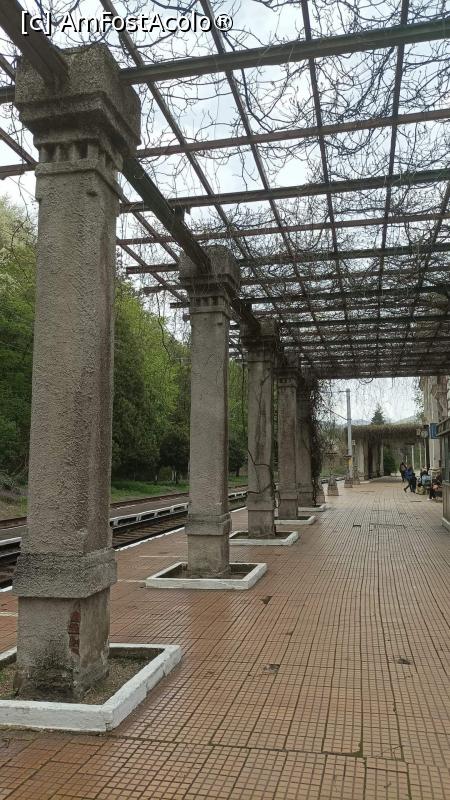 [P11] De-a lungul peronului, clădirea este flancată de coloane romanice