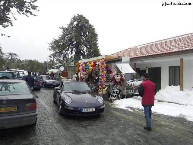 [P11] "Statiunea" de la baza Varfului Olympus. In stanga este un parc, iar in dreapta ceva magazine si restaurante. Erau foarte multe masini.