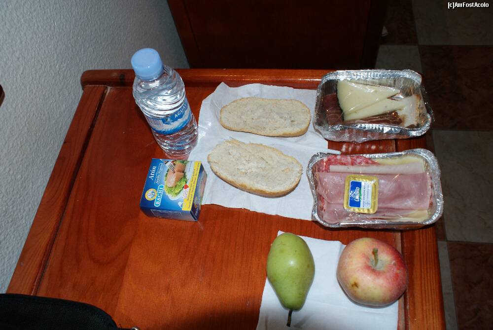 [P15] Acesta este conţinutul prânzului-picnic, pe care-l luam de la recepţie la plecarea în exursie. Conserva este de ton. Este singurul fel care s-a păstrat la toate cele patru excursii. În rest, meniul a fost de fiecare dată altul.