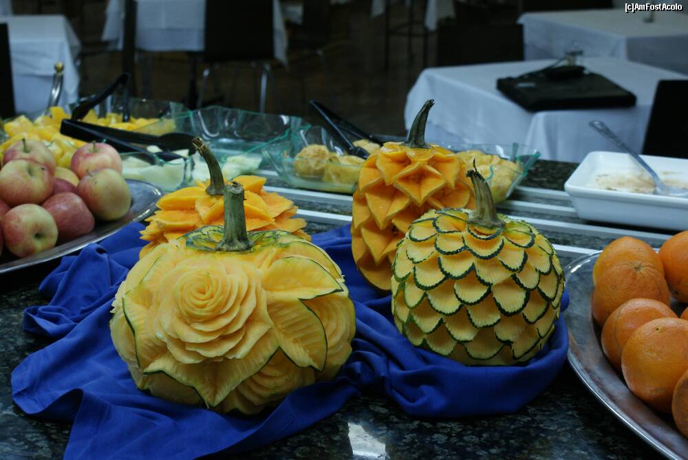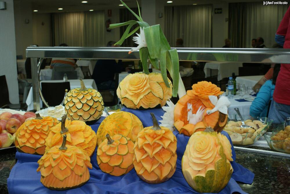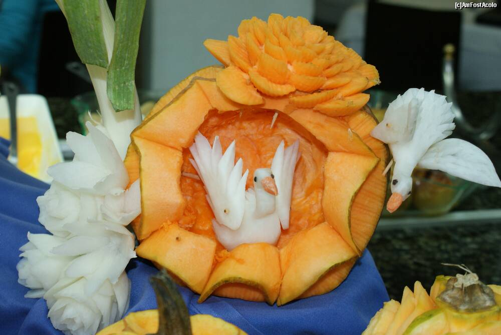 [P08] Printre fructe şi alte feluri de desert, iată şi trandafirii sculptaţi în dovleci de către Fernando.