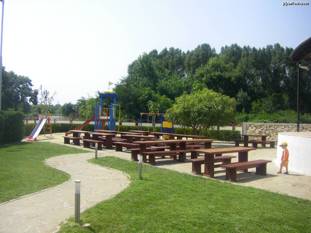 [P03] zona cu mese de lemn...si locul de joaca....ceva verdeata era in acel colt...spre deosebire de alte zone ale statiunii
