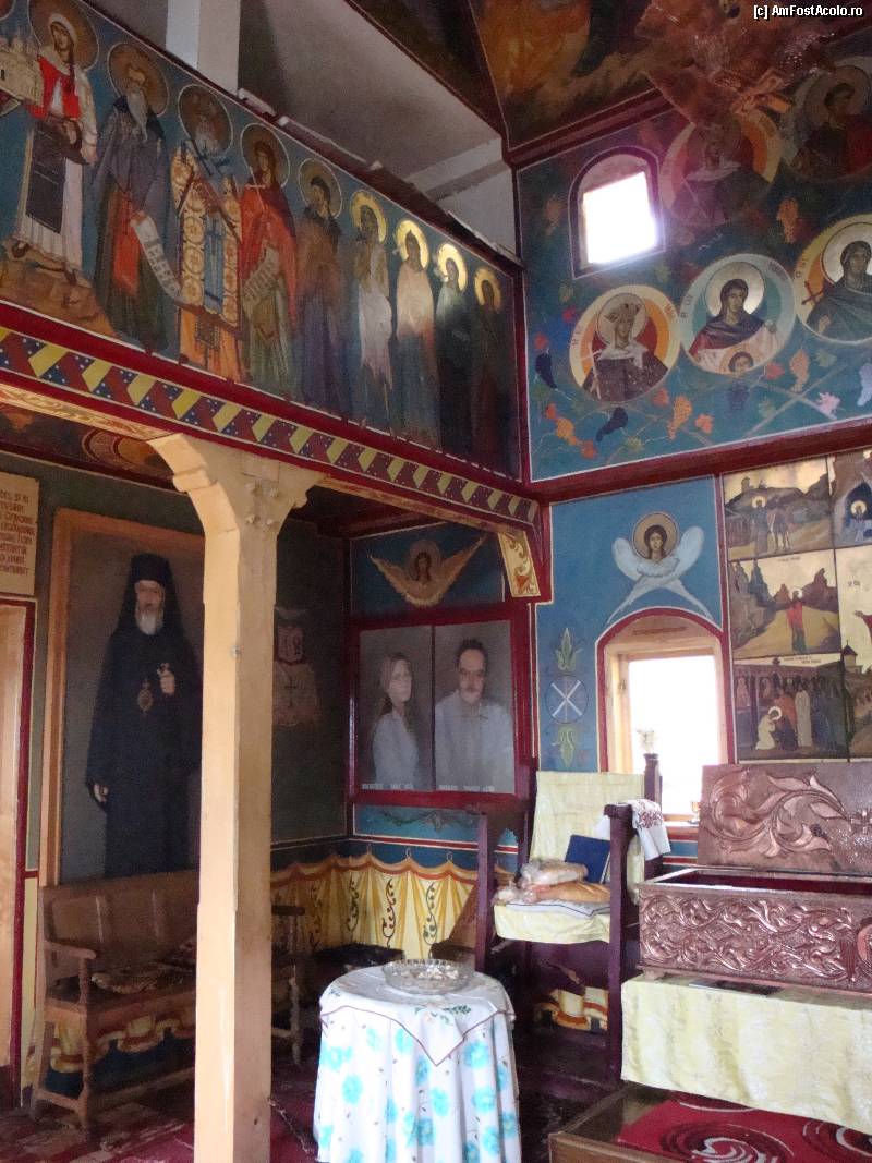 [P32] Mănăstirea Cetățuia Negru Vodă-fragment din interiorul bisericii de lemn. Cele două portrete centrale sunt ale ctitorilor noii bisericuțe.
