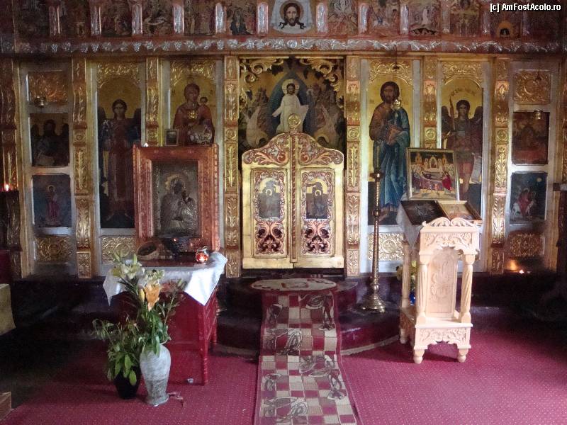 [P33] Mănăstirea Cetățuia Negru Vodă,biserica nouă de lemn : catapeteasma altarului și în stânga imaginii, Icoana făcătoare de minuni a Maicii Domnului