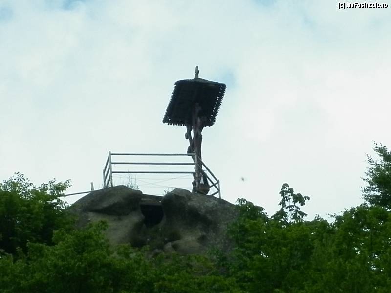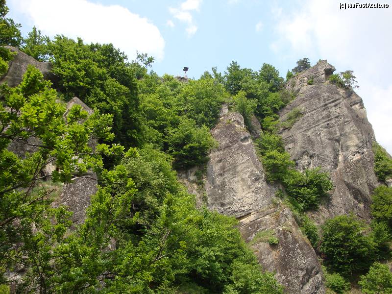 [P44] De pe stânca libațiilor geto-dacice putem contempla stâncile pe care viețuiește Mănăstirea Cetățuia Negru Vodă, iar sus de tor, în centru, se zărește Crucea dorințelor