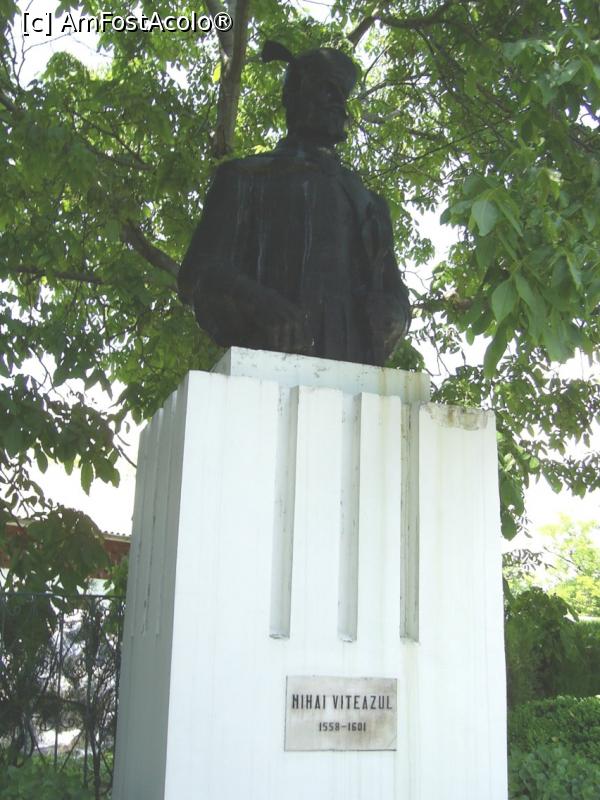 [P11] Mănăstirea Dealu - În curtea interioară, bustul voievodului Mihai Viteazul.