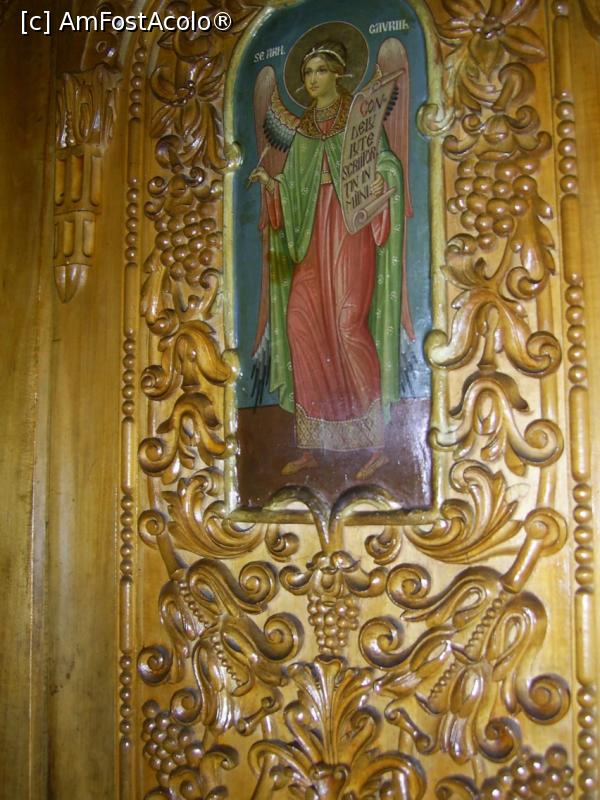 [P26] Mănăstirea Dealu - Interiorul bisericii. Sculptură în lemn, detaliu.