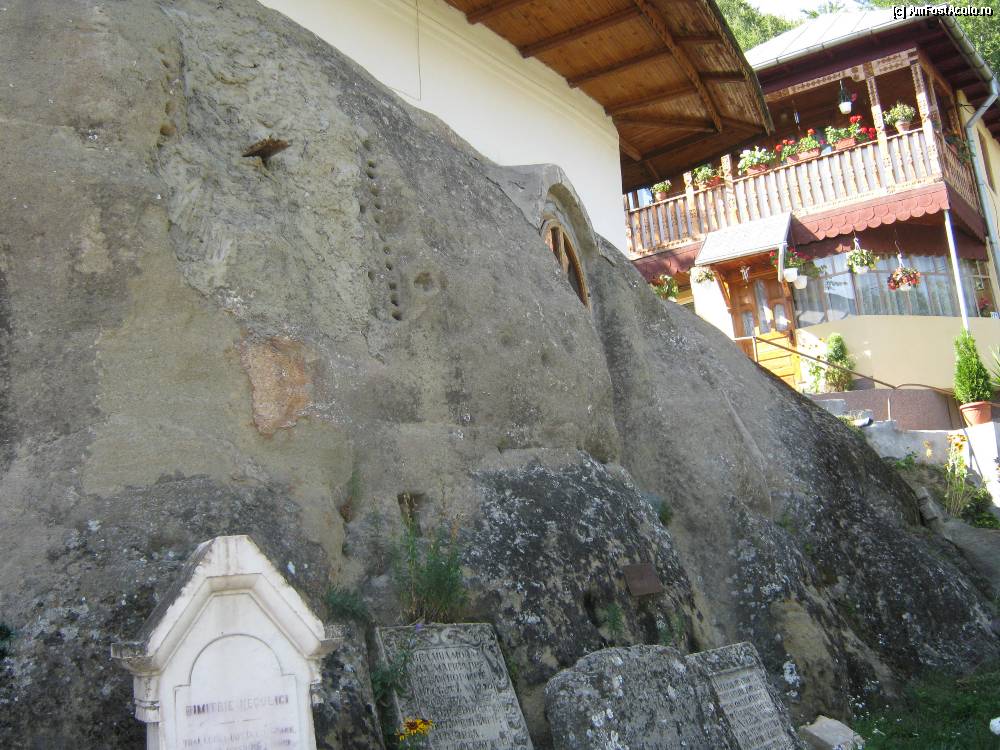 [P10] Pietre funerare pe laterala stăncii din care creşte biserica.
