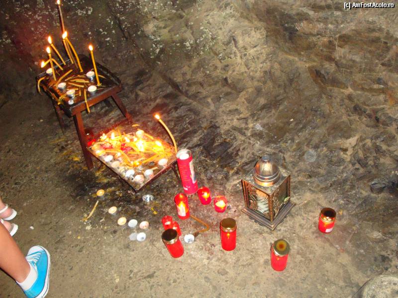 [P30] Mănăstirea Prislop: suport improvizat pentru lumânări în Peștera Cuviosului Sihastru Ioan de la Prislop