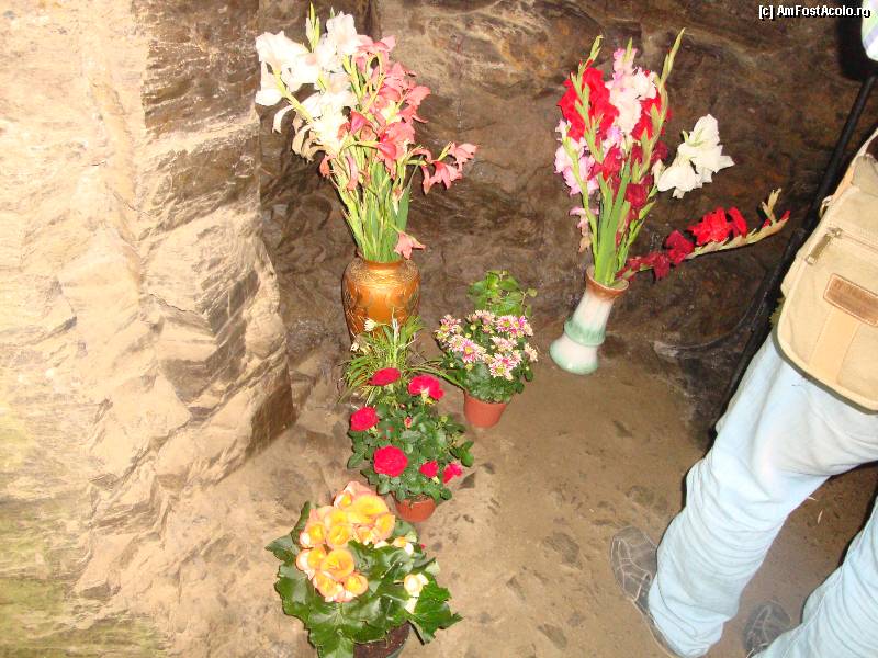 [P31] Mănăstirea Prislop: Peștera Cuviosului Sihastru Ioan de la Prislop. E frumos că pelerinii n-au uitat să aducă și aici flori proaspete.