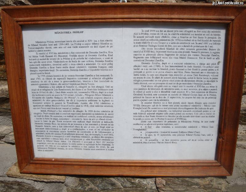 [P41] Mănăstirea Prislop: istoria bisericii monahale afișată la intrare ăn sfântul lăcaș
