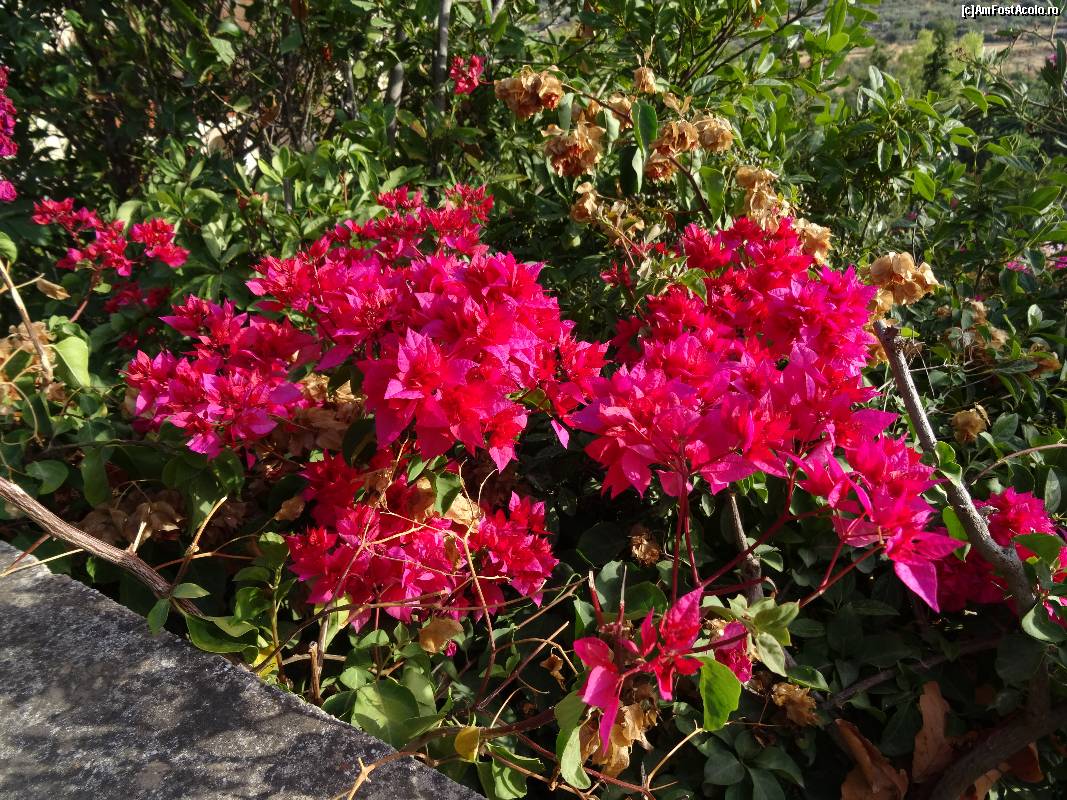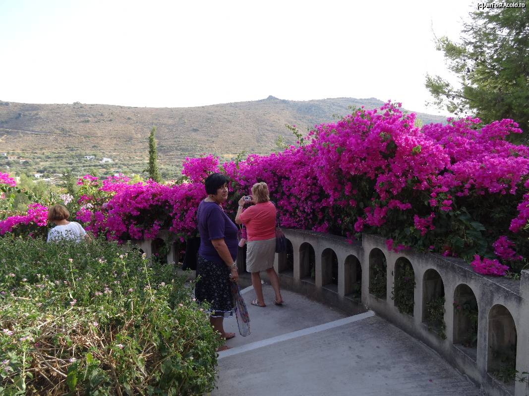 [P50] Mănăstirea Sfântul Nectarie din Eghina : boungavillea înflorită pe aleea spre Catedrala Sfântului Nectarie