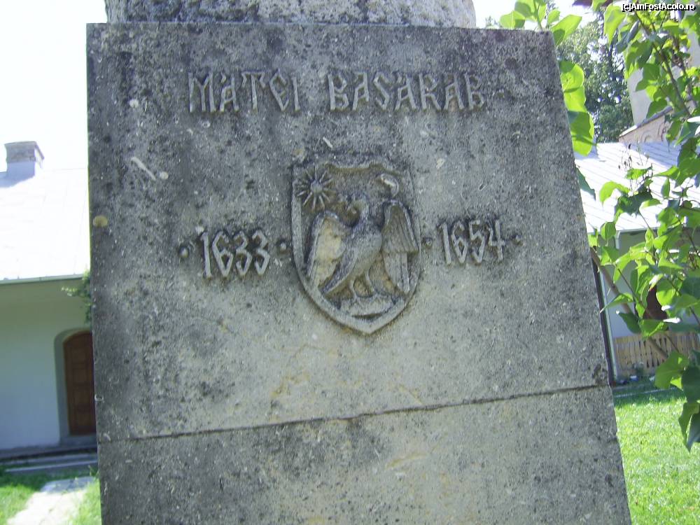 [P18] Manastirea Stelea - Monumentul Matei Basarab si stema Tarii Romanesti.